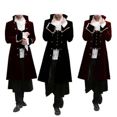 Men’s Regency Gothic Velvet Long Captain Pirate Jacket Steampunk Victorian Vintage Fashion Coat